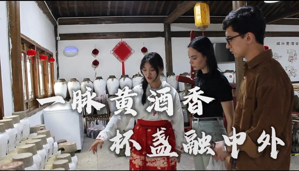 团队自3月起开展实地调研,先后走进中国黄酒博物馆、绍兴黄酒小镇、鲁迅故里等文化地标挖掘素材。作品以绍兴黄酒为切入点,紧扣“小切口见大文明”的核心,从历史源流、酿造工艺、文化背景、日常生活印记和中外文化交融等多维度,用双语传递中国人的礼仪之道与真挚情怀,生动诠释中国文化的传承与发展。团队特别邀请我校第二届外国留学生SEYIDOVA DIANA、NOSIROV MUHIDDIN共同参与录制,既让不同文化背景的外国友人在酒香中深化对中国传统文化的认知,又生动展现了“各美其美,美美与共”的文化理念。