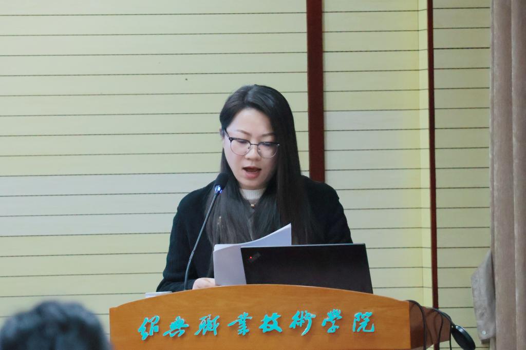 就业工作先进集体代表、建筑与设计艺术学院党总支书记、副院长杨越发言,他交流了该院面对房地产行业下行、建筑企业发展承压的行业背景,动态研判就业趋势、及时调整工作策略,聚焦机制完善、供需对接、育人赋能上下功夫,全力推动毕业生高质量充分就业。