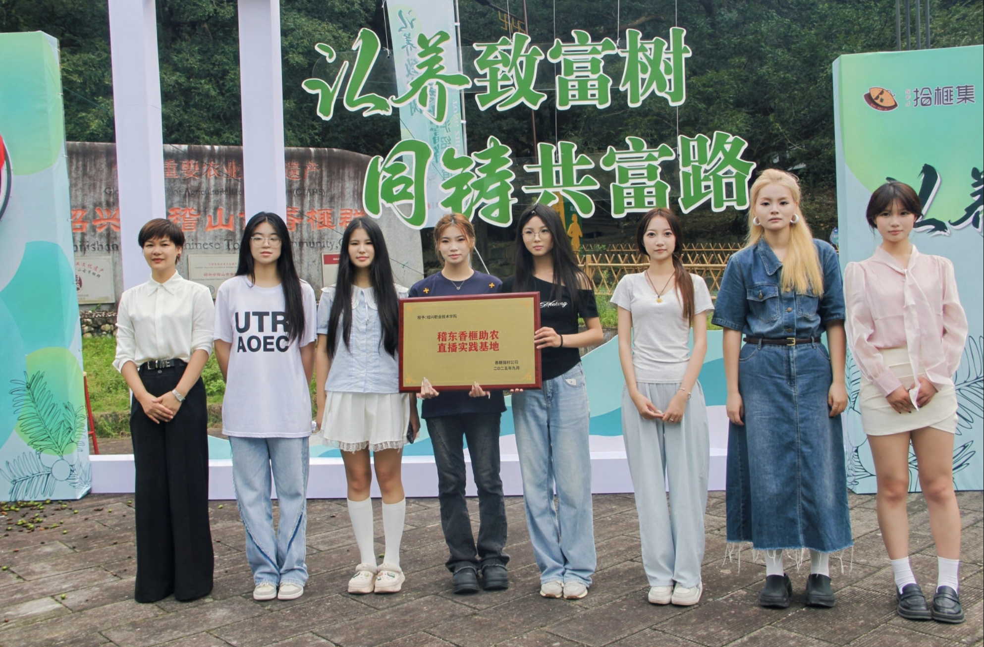 大学生通过电商直播,拓宽香榧等农产品的销路。 稽东镇是香榧核心产区,拥有超5万亩种植面积与千年香榧林,然而,香榧产业如今面临着种植不稳定、销售渠道传统、人才短缺、品牌推广难等问题。今天的仪式上,“致富树”项目正式启动,上海阿甘兄弟品牌管理有限公司等企业与稽东镇正式签订认养协议。每一棵被认养的香榧古树,都将获得一张独一无二的电子“树权凭证”。企业不仅能够收到树上结出的香榧果实,更成为乡村故事的“共创者”。