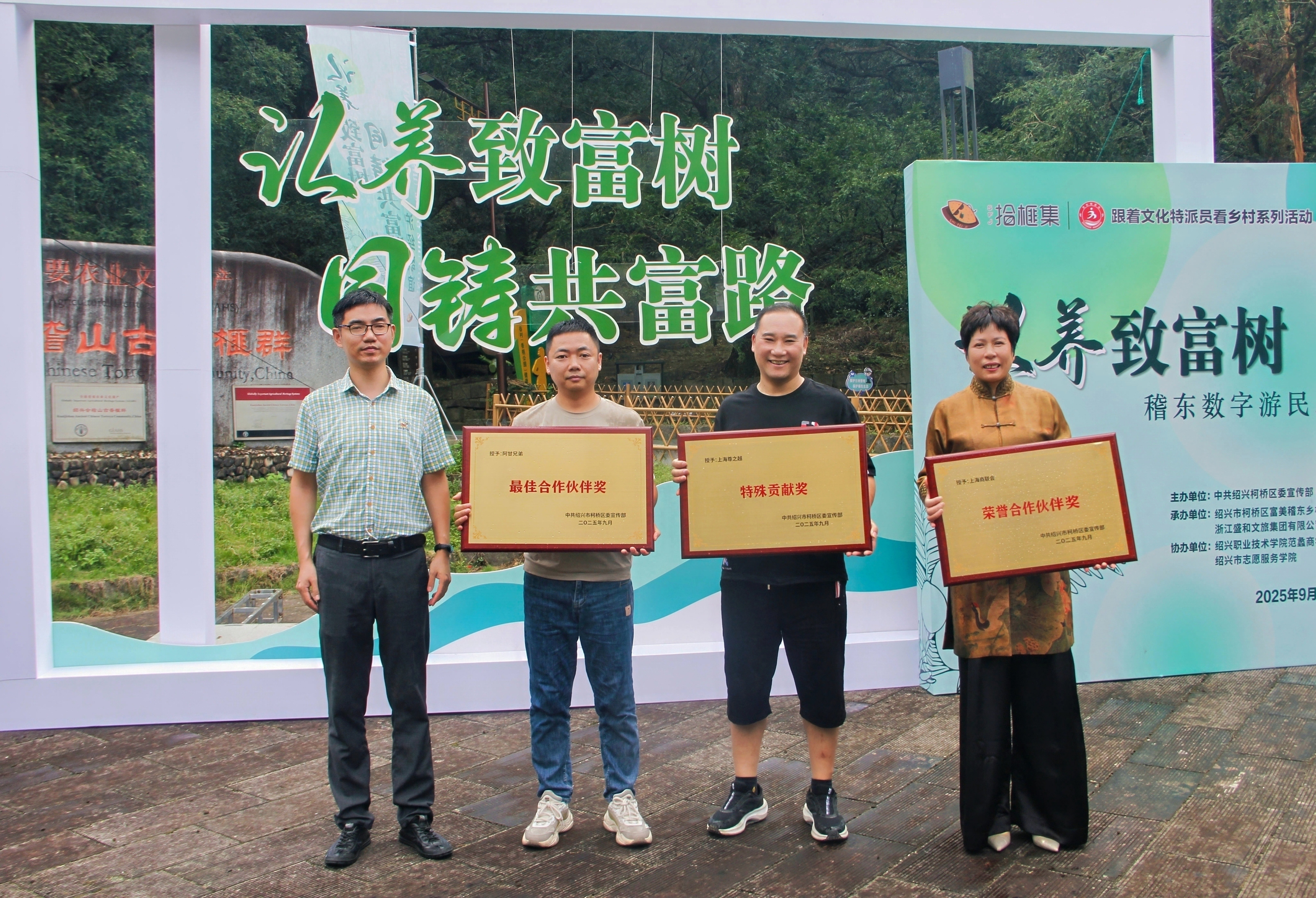 柯桥稽东镇占岙村,绿水青山、风过榧香。今天,随着“数字游民助力古树保护”仪式在千年香榧林间启动,来自上海、绍兴两地的企业、高校与政府代表共同携手,以“古树认养”为切入点,为绿意浸润的小村再添一抹亮色。