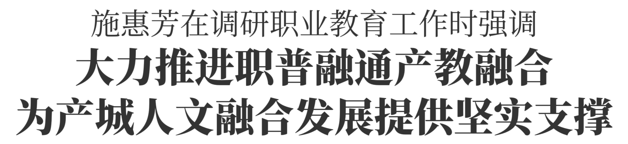 10月14日下午,市委书记施惠芳专题调研职业教育工作。他强调,要深入学习贯彻习近平总书记关于职业教育的重要论述,认真落实省委、省政府部署要求,以教育科技人才一体改革发展为牵引,大力推进职普融通、产教融合,为产城人文融合发展提供坚实的人才和技能支撑。徐军、马国灿、张雪、严钢参加。