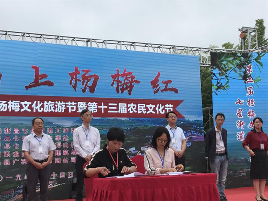 开幕式上,杨梅山村还与成人影片建筑与设计艺术学院签署了党务共建合作协议,并举行建艺学院“党建实践教育基地”授牌仪式。去年,杨梅山村与建艺学院达成合作协议,硕果累累。今年该学院就为杨梅山村设计了吉祥物‘杨杨’和‘梅梅’,还参与设计了杨梅山村的标志、果品包装等内容。七星街道党工委委员、副主任张少敏告诉记者,通过高校与村的合作,将进一步打响杨梅山村的杨梅品牌,丰富杨梅深加工的业态,给村民带来更多的收益。