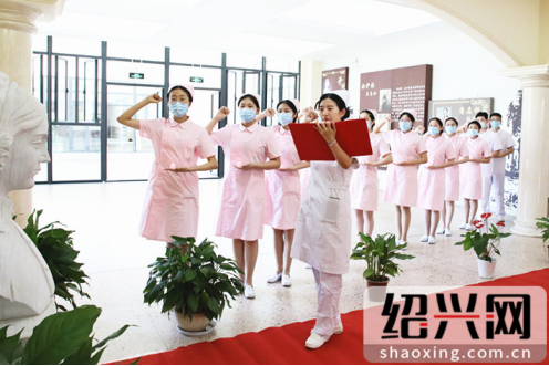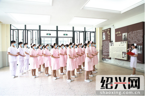 护理学子穿上粉色的护士服,佩戴口罩,在老师的带领下宣誓,随后,学生代表向南丁格尔像献花,表达对南丁格尔崇高的敬仰之情。