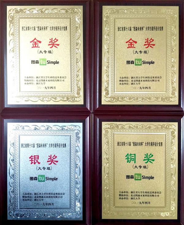 4月27日,由浙江省教育厅主办、浙江大学承办的浙江省第十六届大学生程序设计竞赛在浙大紫金港校区举行。我校4支参赛队全部获奖,取得了专科组2金1银1铜的好成绩。我校为全省唯一摘得ACM竞赛“九连金”的高职院校。