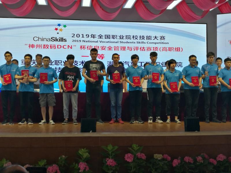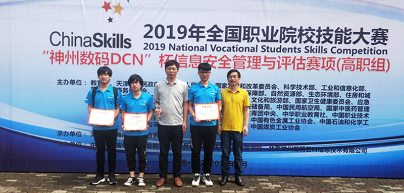 6月12日,2019年全国职业院校技能大赛"神州数码DCN"杯信息安全管理与评估赛项(高职组)在湖北武汉举行,我校喜获该赛项国赛一等奖。