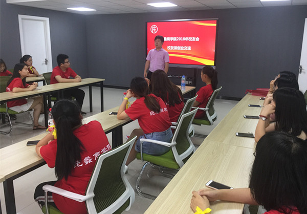 6月18日,校大学生创业园路演室里欢笑阵阵。范蠡商学院第二届校友会之际,在这里举行第47期“商圣讲坛”,浙江凯佩诗雅工贸有限公司副董事长陈真校友,应邀与学弟学妹们分享创业经历。