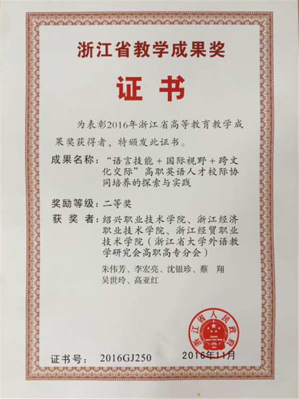 本专业强化国际化与地方化的耦合,不断推进专业文化建设,培养学生以“语言技能+国际视野+跨文化交际能力”为核心的综合职业能力,成立“学业导师团”,以竞赛、创新创业、专升本等为平台,将“人人成才”育人理念深度融入人才培养全过程,培养了一大批创业学子和技能精英,相关成果获省教学成果二等奖。