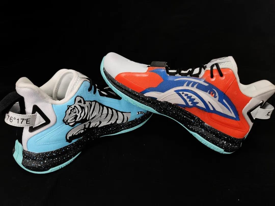 陈培东没有提任何要求,这既给了王海波充足的创作空间,也成了一项考验。他查阅了大量的资料,充分了解运动员本人的喜好兴趣。最终,陈培东的名字、老家的经纬度、全明星赛的符号、山东队的标志等8个元素,巧妙地布局在鞋面、鞋后跟、鞋邦、鞋舌等处。