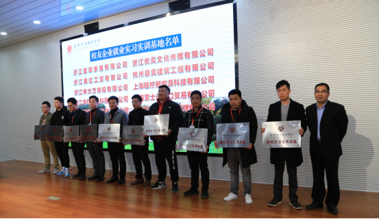 执行校长黄柏江为校友企业就业实习实训基地授牌。