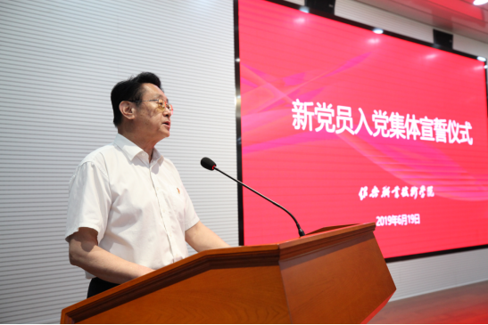 赵建民寄语全体新党员,把学习党的理论知识作为终身的追求,把党的宗旨融入个人成长发展,时刻铭记党员身份,发挥先锋模范作用。他希望大学生党员们能以青春之我、奋斗之我,用自己的言行影响并带动身边的同学,守正创新,不负时代重任。