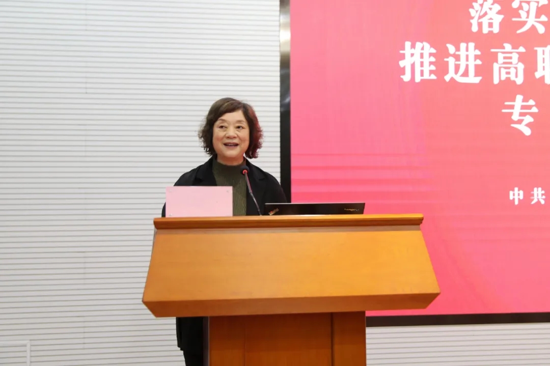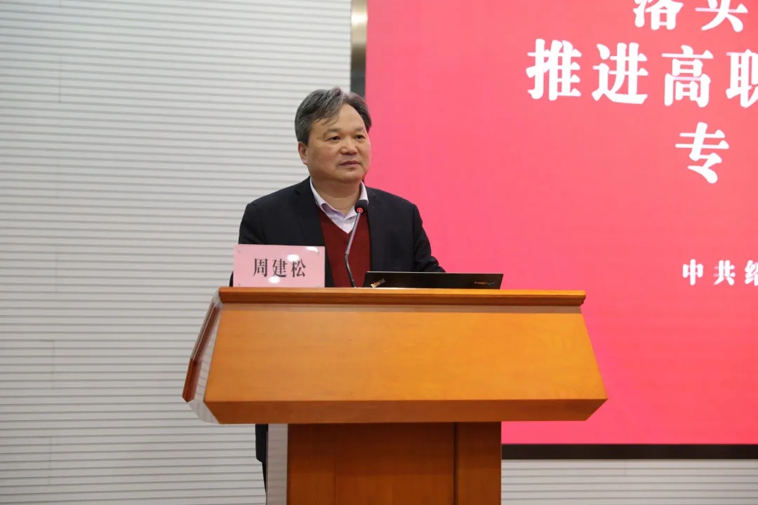 周建松教授细致解读了职业教育相关政策,详细阐述了“以高水平党建引领高质量发展”“以大思政体系推动高质量发展”“以双高建设带动高质量发展”“以行动计划落实高质量发展”“学校如何在高质量发展中担当作为”等方面内容。他强调,高质量发展是时代的命题,要充分认识高质量发展的重大意义,系统谋划推进高质量发展的重要举措,创新思维,真抓实干,为努力建设中国特色、世界水平的高职学校持续奋斗、不懈努力。