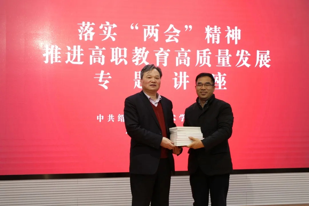 会议开始前,周建松教授向我校捐赠其所著书籍,我校执行校长黄柏江代表学校接受赠书。