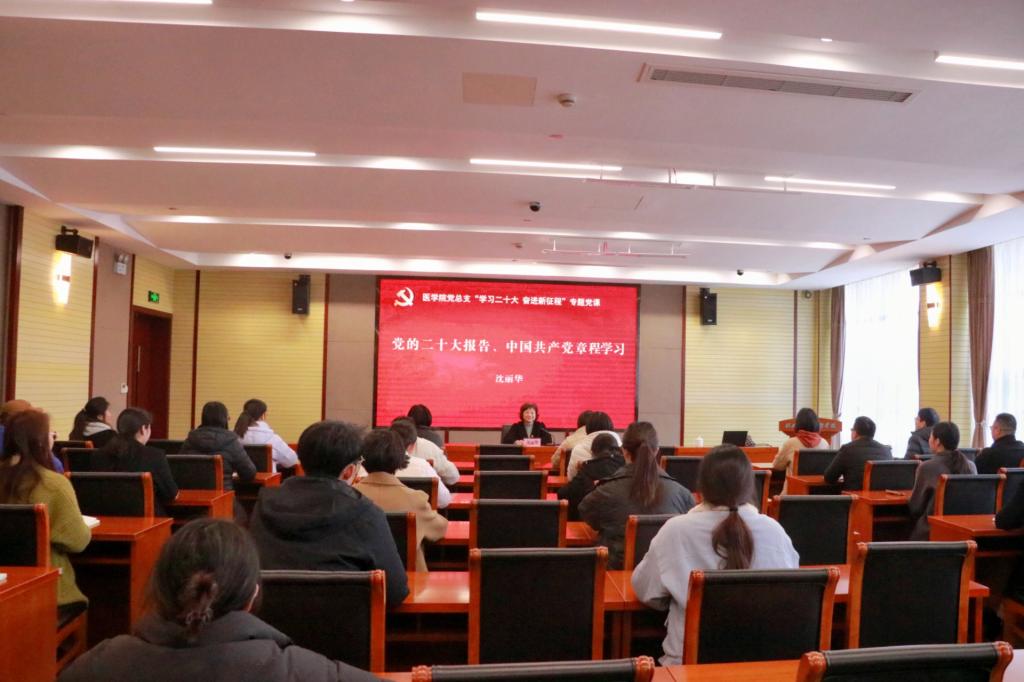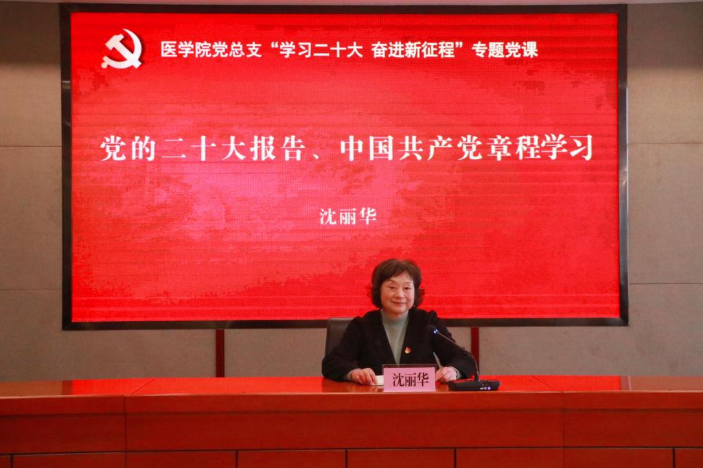 为深入学习贯彻党的二十大精神,准确理解把握党的二十大报告阐明的新时代重大理论和实践问题,按照“全面学习、全面把握、全面落实”的总体要求,2月21日,我校党委书记沈丽华同志以“党的二十大报告、中国共产党章程学习”为主题,为医学院全体教师讲授专题党课。