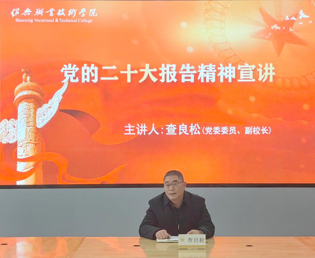 4月8日下午,我校党委委员、副校长查良松到范蠡商学院作学习贯彻党的二十大报告精神专题宣讲,学院领导班子、中层干部、基层教师等听取宣讲。