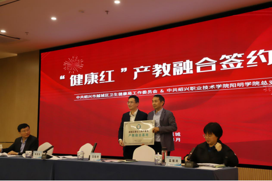 阳明学院坚持以党建引领、联建共享为发力点,以发挥学前教育专业群资源优势和专业特色为落脚点,本次与越城区卫健局签约成立“健康红”产教融合基地,迈出了人才培育路径创新发展的坚实一步。