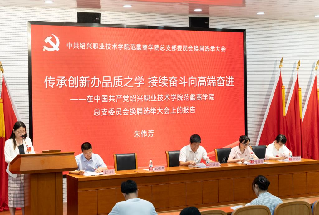 学院党总支书记朱伟芳同志代表上一届党总支作《传承创新办品质之学续接奋斗向高端奋进》工作报告。报告系统总结回顾了上一届党总支取得的主要成绩:1个党建项目入选浙江省“双百示范”工程、党总支入选全省高校党建工作“标杆院系”培育创建单位、第一党支部立项浙江省高校“双带头人”教师党支部书记工作室、1项教学成果获2021年浙江省高等教育教学成果奖二等奖、2项成果连续获市德育创新成果一、二等奖、2个案例分别入选教育部“提质培优增值赋能典型案例”和省教育厅助力乡村振兴典型案例、党总支被评为绍兴市直教育系统先进党组织等。报告对今后一段时期的工作,提出了努力方向,要从“落实立德树人根本任务,稳步推进‘办品质之学’”、“夯实组织保障,统筹推进‘强基促稳工程’”、“建好‘高水平专业群’,全力助推内涵建设提质培优”、“学科统领、人才兴院,有力保障学院高质量发展”、“加强党总支领导班子建设,切实担负学院发展重任”等五个方面加强落实。全体党员经过讨论,一致通过工作报告。