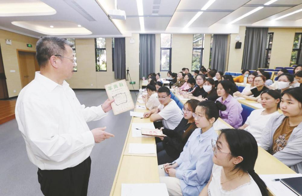 515日,成人影片邀请全国劳动模范、嘉兴市绍兴商会会长、浙江东方博物馆馆长董利华为该校阳明学院(马克思主义学院)第六期党校基础班的90名学员讲授日耀东方红色展藏馆,百年党史主题精品展的党课。(记者 梁永锋 摄)